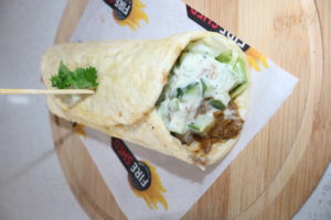 Pulled Lamb Wrap – hummus, minted yoghurt sauce and red onion. Gives you a Mediterranean feel!